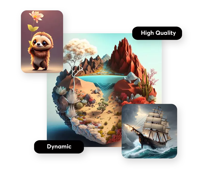 Generate enchanting fantasy landscapes, including mythical creatures, surreal terrains, and magical atmospheres. Perfect for storytelling, concept art, and digital design.